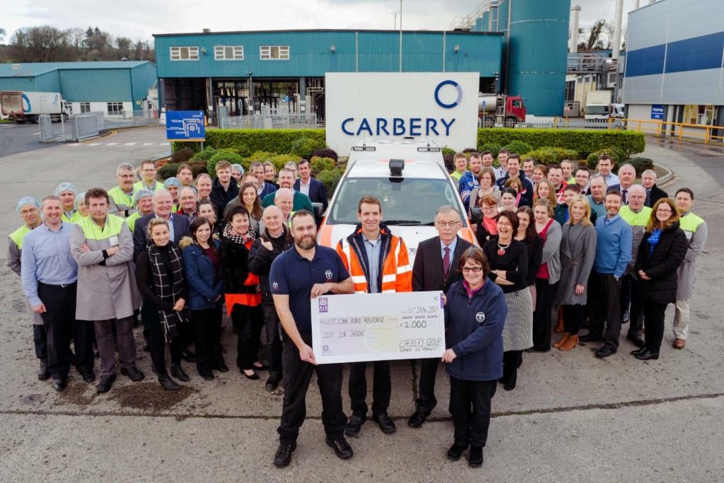 Carbery delivers on its Green 50 pledge by diverting 15% less waste to landfill, achieving an actual total weight reduction of 22.5 metric tonnes compared to 2015 levels. Green 50 is a not-for-profit initiative whose mission is to raise money for charities through the promotion of green practices. The ‘Jeep for Jason’ West Cork Rapid Response was the selected charity, and Carbery donated a €2,000 cheque from their waste savings initiative. In doing so, Carbery became the first Irish company to fulfill its Green 50 pledge.